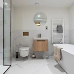 客人会对城市的景色印象深刻. 浴缸 和步入式淋浴间都是在公寓里提供的.